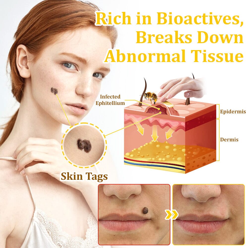 The flysmus⢠Bee Venom Treatment Cream provides an effective solution by harnessing the powerful properties of bee venom to target a range of skin imperfections, such as eczema, acne, rosacea, fungal Infections, warts, skin cancer, blemishes, and even conditions like psoriasis. Packed with active ingredients from bee venom, this advanced formula gently dissolves and eliminates unwanted growths, while also offering anti-inflammatory benefits to help soothe the skin.